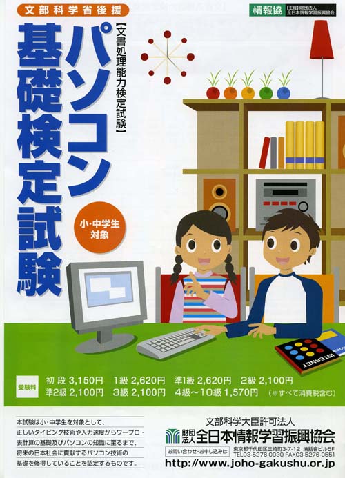 本試験は、小・中学生を対象として、入力速度からワープロ・表計算の技術の基礎及びパソコンの知識の習得を問う試験です。